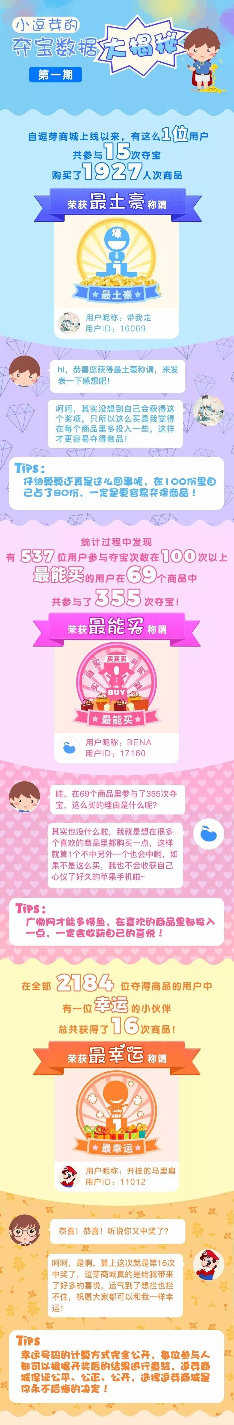 那么,上线以来,逗芽商城的第一期夺宝数据终于公布,来看看你不知道的那些事儿!