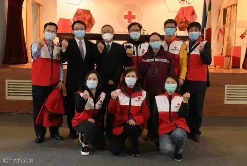 3月13日、イタリア赤十字本部で撮影された李軍華駐イタリア大使と中国医療専門家チームの集合写真