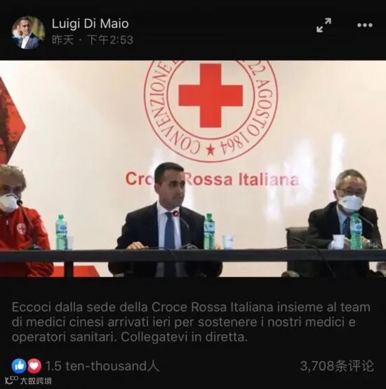 イタリア赤十字のロッカ会長は、「中国専門家チームは最初にイタリア入りした国際支援者であり、中国の行動は非常に物惜しみなく、感動的だ」と述べた。