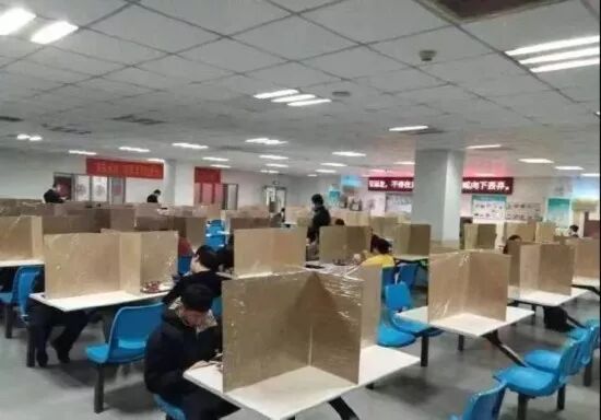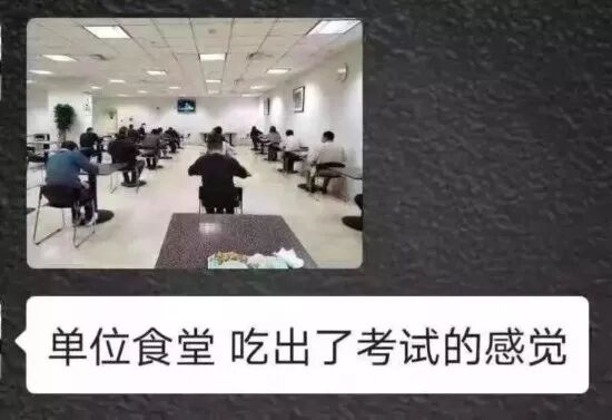 ネットユーザーからは、「まるで試験会場みたい。試験科目はズバリ『食事』。試験官もいて、コソコソ話をしたり、物を誰かに渡したりする人がいないか見張っている。何かあれば挙手して知らせること」といったコメントも寄せられている。