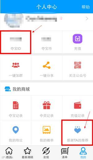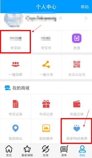 ↑ 个人夺宝ID查看 ,及推荐人填写处
