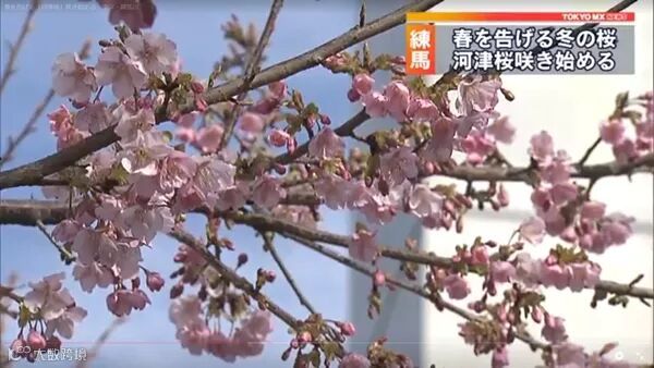 据东京首都电视台报道,尽管最近几天非常寒冷,但东京都练马区“冬季的樱花”的河津樱却悄然开放,过往行人纷纷驻足观看。