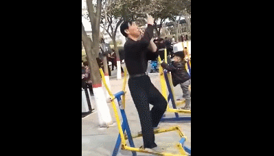 そのほかにも公園などによくある健康器具の新しくて、奇妙な使い方を考え出すおじさんやおばさんもいる。