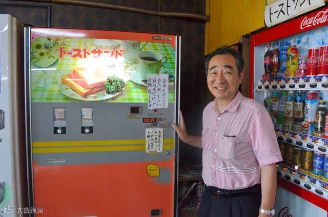 自助餐厅老板中岛薰和自动贩卖机。(图片来源:日本《朝日新闻》网站)
