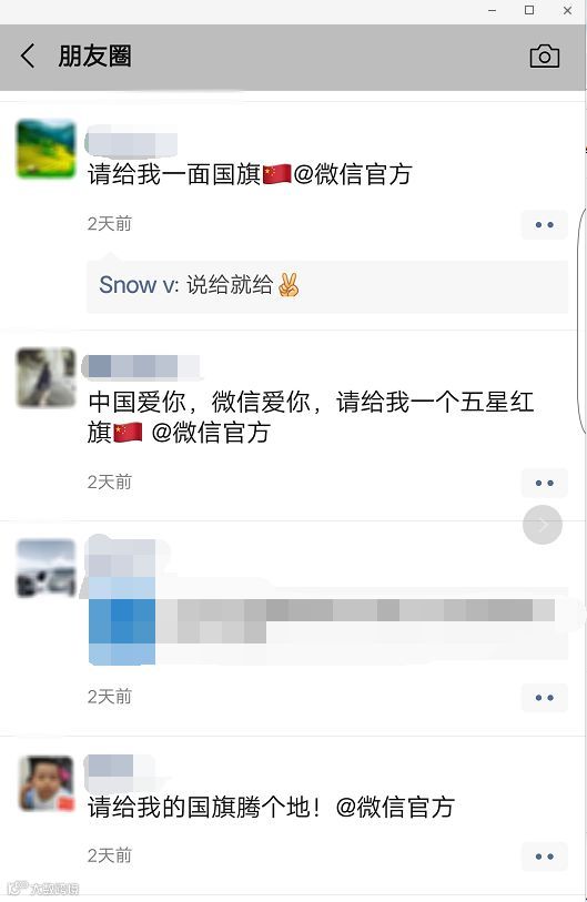 ネットユーザーは、そのトレンドに乗り、微信にアットマーク付けして願いことを投稿し、モーメンツはたちまち盛り上がりを見せた。また、多くの微信の公式アカウントもその波に乗り、自身のアカウントに、「中国国旗付きのプロフィール画像」にするための方法を紹介。なかには、「中国国旗付きの画像をちょうだい」というアカウント名の公式アカウントを立ち上げたIT企業もある。