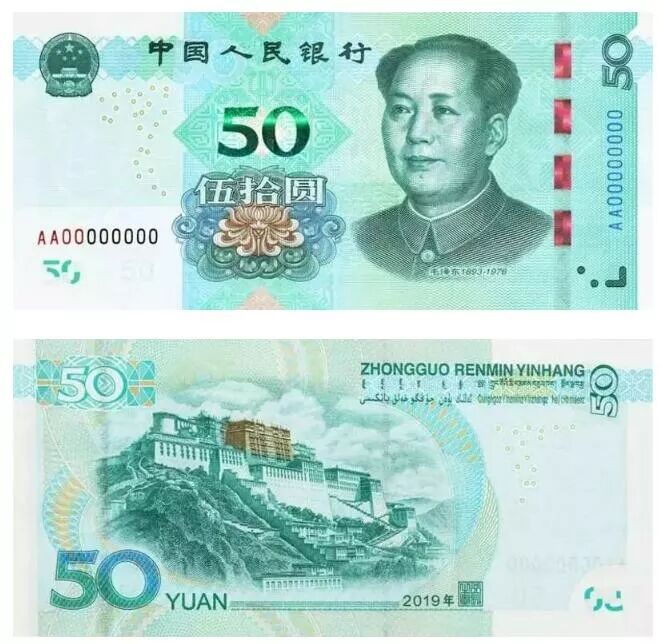 新版の50元紙幣、20元紙幣、10元紙幣は表面中央の額面の数字が光学可変インクによるものに調整されたほか、中央の装飾の花のデザインが調整され、左側に装飾の模様が入り、左側の横書きの番号と透かし模様が調整され、左下角にあった光学インクの額面数字と右側の浮き彫り印刷の手触りがなくなり、右側にはホログラムセキュリティラインと縦書きの識別番号が入り、右側の毛沢東の肖像と右上角の額面数字のデザインが調整された。また20元紙幣と10元紙幣は磁気ホログラムセキュリティラインがなくなった。