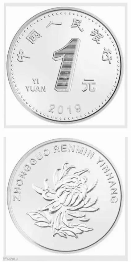 新版人民元のうち、1元硬貨と1角硬貨は1999年版第5版の1元硬貨のスタイルを踏襲し、表面の額面の数字のデザインと裏面の花のデザインが適宜縮小され、直径は25ミリメートルから22.25ミリメートルになる。表面は額面数字の「1」の輪郭線の内側に「\」と「1」の透かしが入り、周縁部に立体感のある円が施され、材質がこれまでと同じ。1角硬貨の直径、サイズはこれまでと同じ。