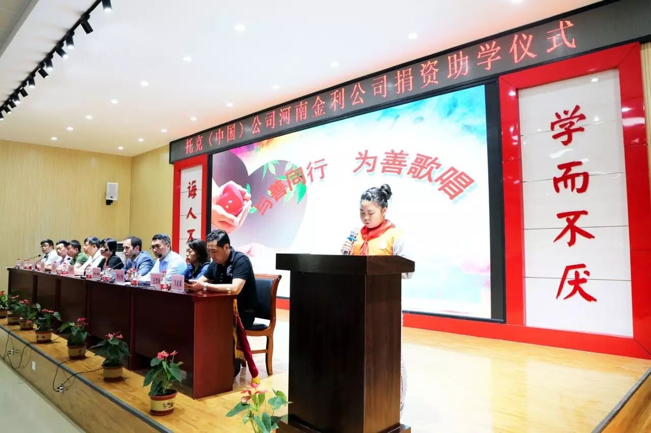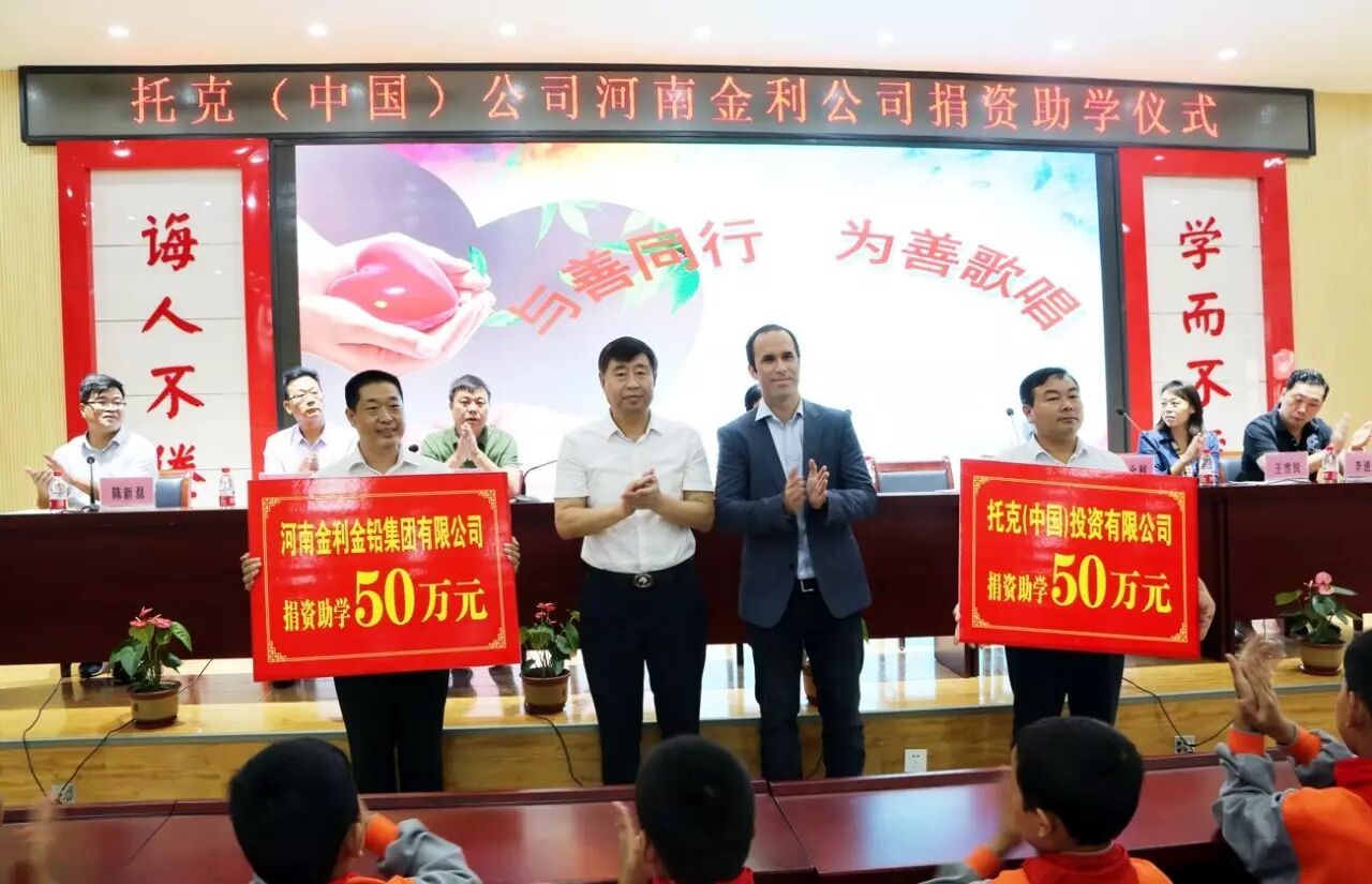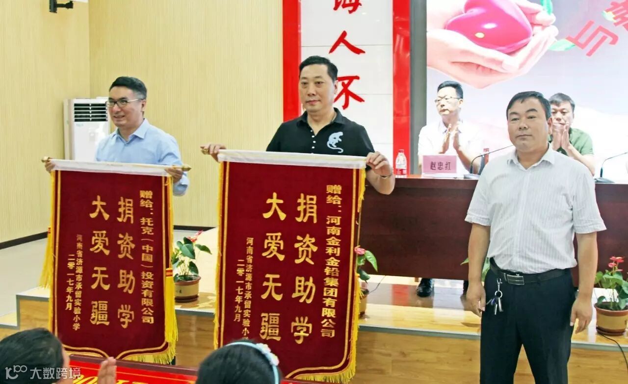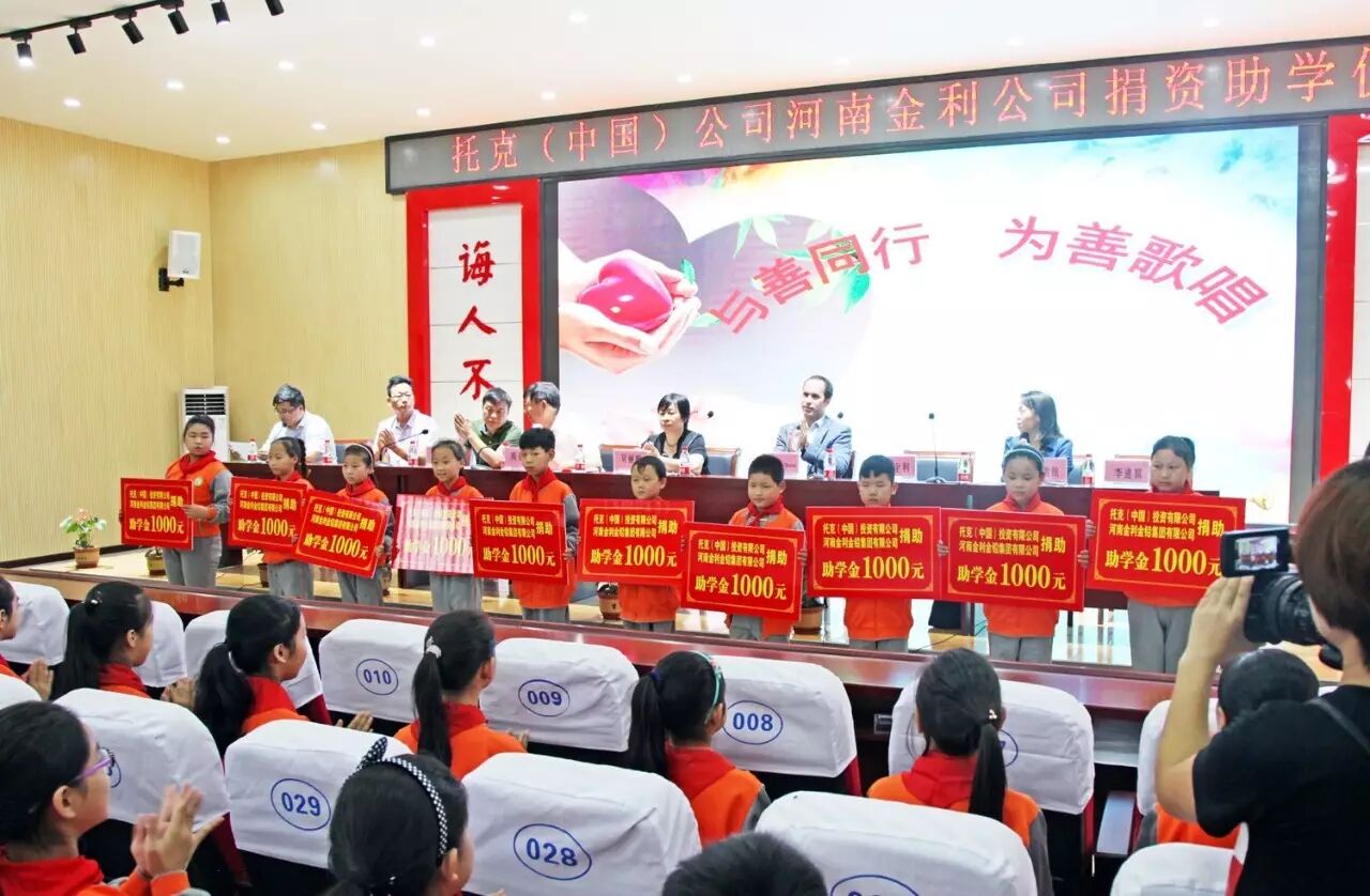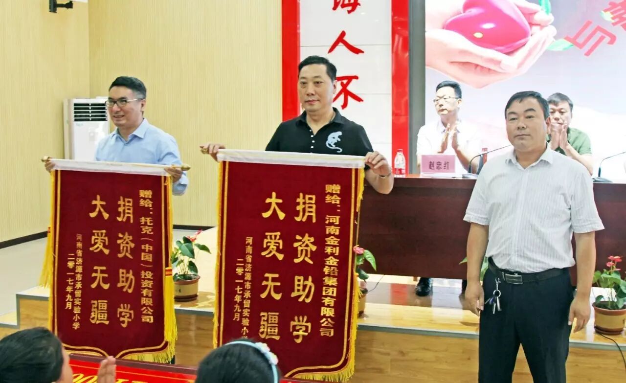 2017年9月14日中午9:00,托克(中国)投资有限公司和河南金利金铅集团有限公司携手在承留实验小学金利托克报告厅举行爱心捐赠活动。