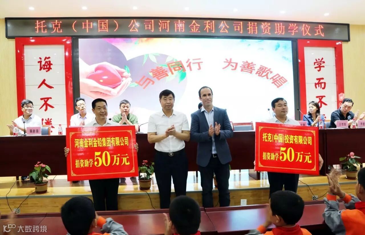 ▲此次捐赠由托克(中国)投资有限公司铅锌部主管杠扎罗先生和河南金利金铅集团有限公司党委书记、董事长兼总经理成全明先生向承留实验小学各捐赠善款五十万元。