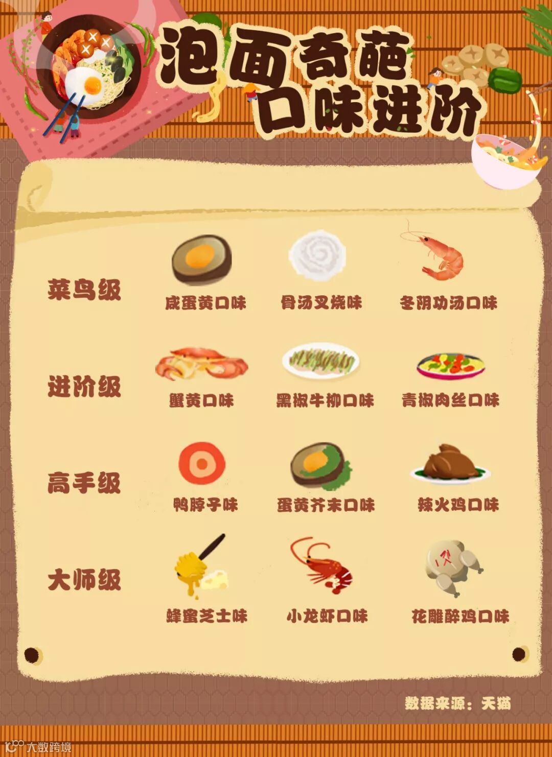 10年前と比較すると、インスタント麺のフレーバーについては選択肢がかなり増えた。香菜(パクチー)味、塩漬け卵黄味、トマト卵炒め味などのような「入門レベル」から、ザリガニ味、酸味と辛みをきかせたホルモン味、鶏の紹興酒漬け味、さらにはチーズ味のように変わった「アップグレードレベル」にいたるまで、インスタント麺のさまざまなフレーバーは、「ない味はない」と言えるほどバラエティに富んでいる。