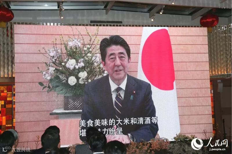 ライトアップ式典で、日本の安倍晋三首相がビデオで中国国民にあいさつし、心のこもった新春の祝福メッセージを伝えた。