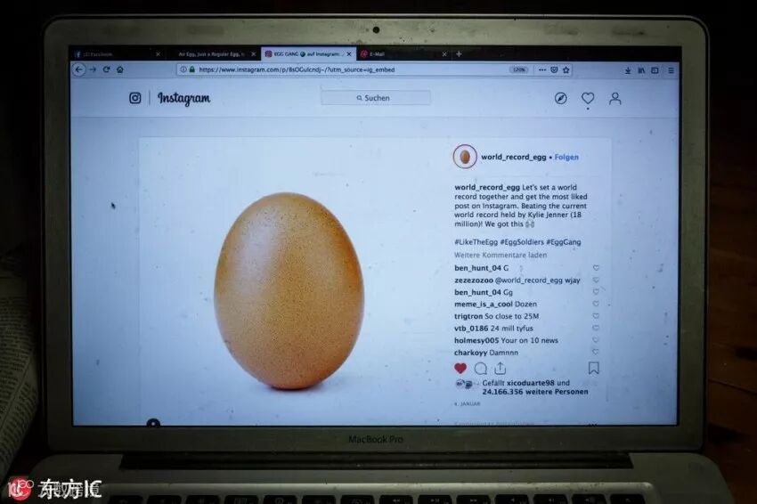 この写真は今月、「@world_record_egg(世界記録の卵)」というアカウントに投稿された。同アカウントに投稿されている写真はこの茶色の卵の写真だけで、「みんなで世界記録を打ち立てて、インスタグラム最多『いいね』の座を獲得しよう! カイリー・ジェンナーの世界記録(1800万)を破るんだ!やってやろう」という書き込みが添えられている。現在までに、同写真は3300万件以上の「いいね!」を獲得し、インスタグラムの「いいね!」最多記録を既に塗り替えている。これまでの最多記録は、タレントのキム・カーダシアンの妹・カイリー・ジェンナーさんが昨年2月に投稿した娘のストーミーちゃんの誕生を報告した写真で、約1800万件の「いいね!」を獲得していた。