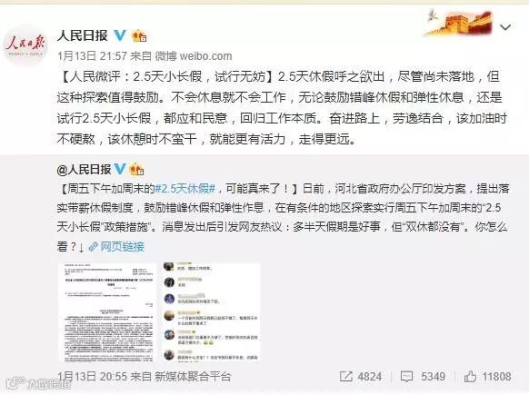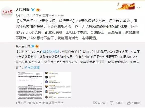 河北省の人々にとっては「2.5日小型休暇」を享受できる可能性がありそうだ。同省政府はこのほど最新実施案を発表し、省政府弁公庁は実施案を印刷・配布し、有給休暇制度の実施案を打ち出し、ピークを避けた休暇やフレックスな休憩を取得するよう奨励している。また条件を備えた地域では、金曜午後と週末の土日を組み合わせた「2.5日小型連休」政策の実施を模索する。この情報が発表されると、ネットユーザーの間でたちまち話題となり、なかには、「半日休暇が追加されるのは良い事だが、そもそも『週休二日』すらない」という意見もあった。