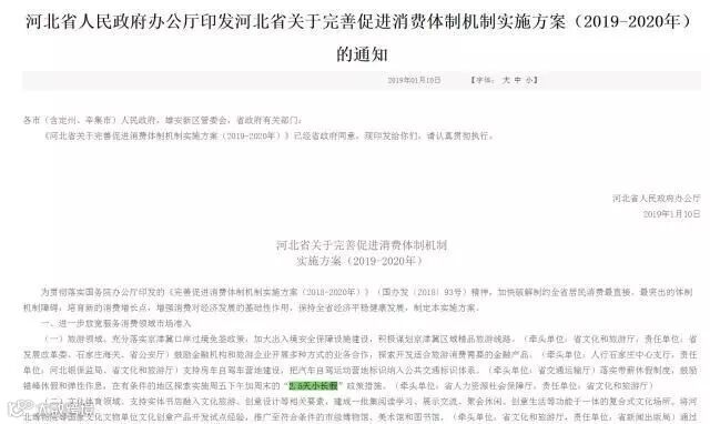 河北省政府は、「本実施案を定めた目的は、全省の住民の消費を抑制している直接的・間接的な際立った体制・メカニズムの障害の除去を加速させ、新たな消費成長点を育て、経済発展に対する消費の基礎的な役割を強め、全省経済の健全かつ穏やかな発展を維持することにある」としている。