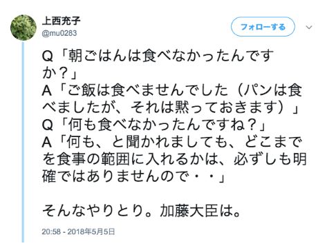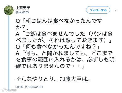 时任日本厚生劳动大臣的加藤胜信在一次有关裁量劳动制的国会审议中偷换概念。法政大学教授上西充子将这种做法比喻为“米饭辩论法”。