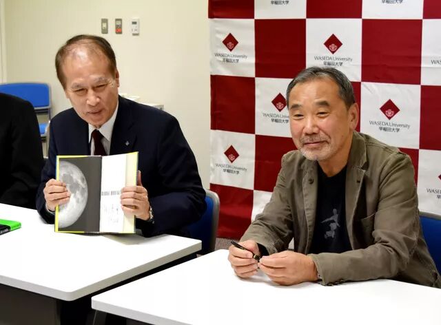 村上春树(右)向母校早稻田大学捐赠亲笔书稿及个人私藏(图片来源:朝日新闻网站)