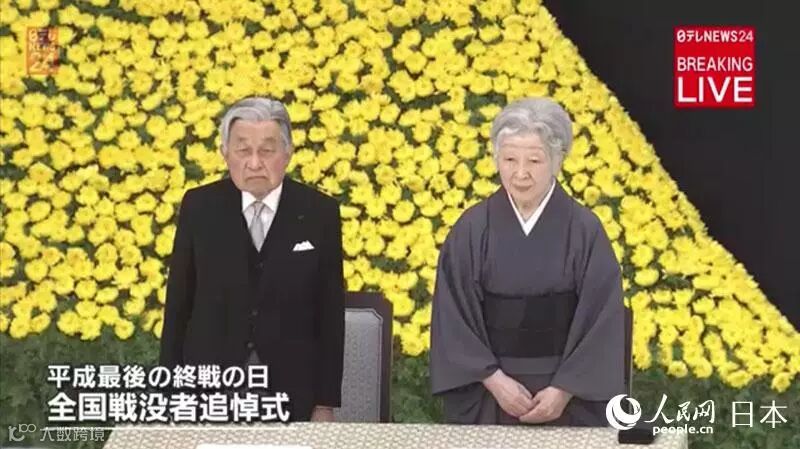 当天,日本明仁天皇与美智子皇后一起出席了在日本武道馆召开的“全国战殁者追悼仪式”。二人将于明年4月底退位,对他们来说,这是最后一次出席该仪式。