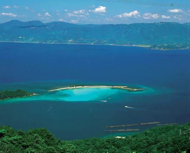 水岛全长约500米,蔚蓝而又澄澈透明的海水映衬着的白色海滨沙滩,让人难以相信日本海也有如此美景。