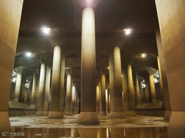 向下走100多节台阶,外郭放水路的地下成排排列着高达18米的巨型混凝土柱子,场景着实壮观,也是许多特摄电影和短篇的拍摄场所。