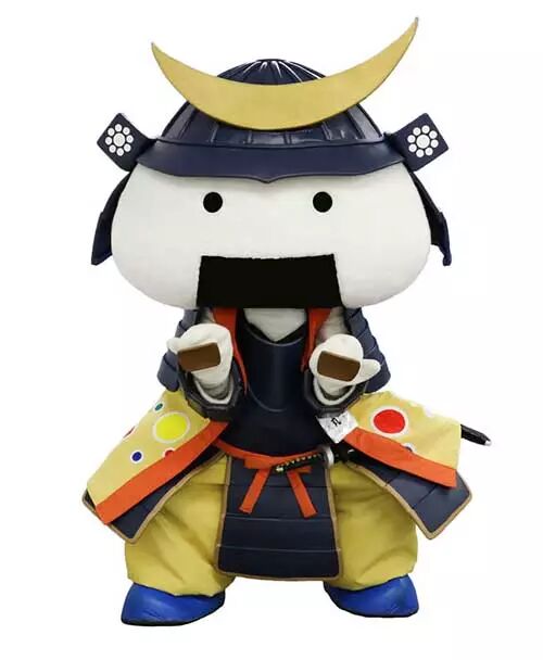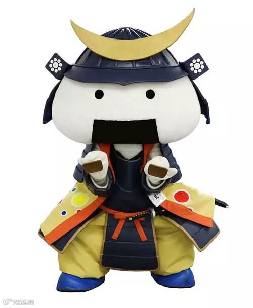 用“饭团”来表现宫城县丰富的饮食文化,头上戴着伊达政宗的头盔代表伊达。