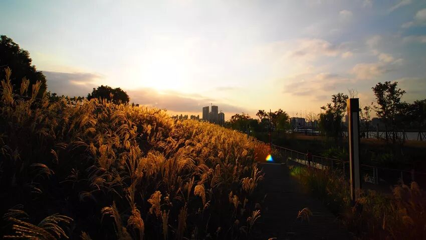 「公園で撮影しているうちに日が傾いてきましたが、ススキの植え込みが太陽の日差しを浴びて黄金に輝いているように見えました。この日も青空が広がり良い天気で、メルセデスアリーナ側から西に歩きながら撮影しました。気持ちのいい一日になりました。」