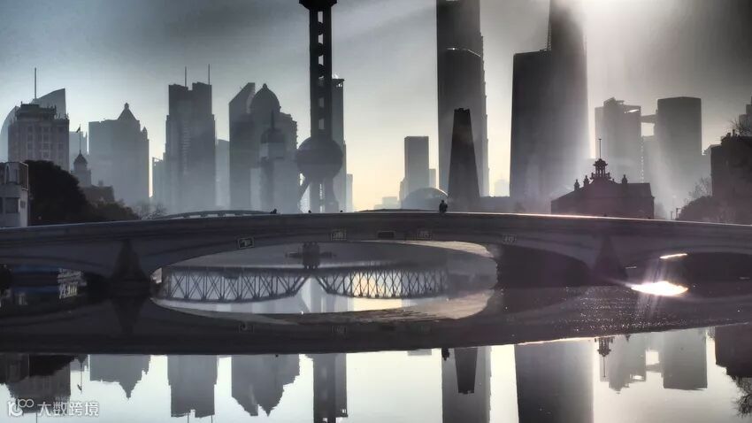 「1月の早朝いつも撮影に行く外灘へ、早朝の光の中で輝くビル群と蘇州河に架かる橋、外渡白橋も川面に反射して、幻想的な感じを受けました。」