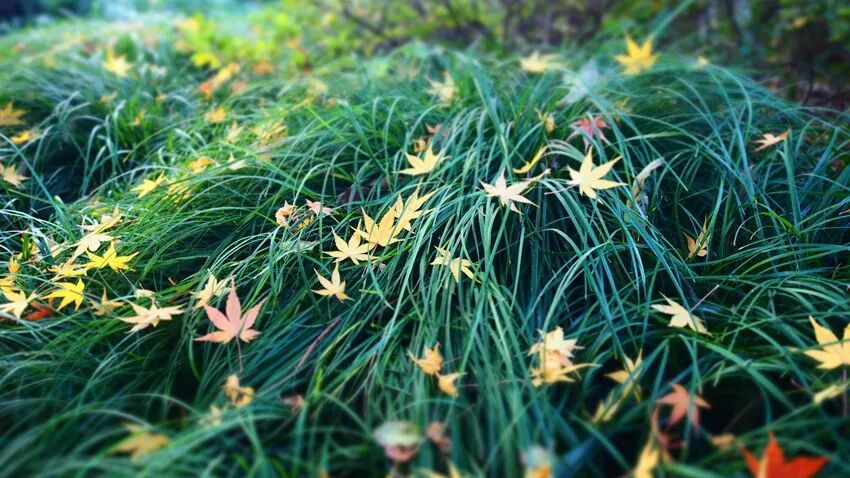 「紅葉がテーマらしい公園で、12月でもまだ紅葉が残っています。下を見れば、緑のカーペットのような草に星のようにちりばめられた紅葉の落ち葉が輝いて見えました。」