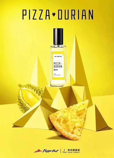 香水を販売する気味図書館(Scent Library)とピザハットは共同でドリアンの香りの香水を2000本限定で販売した。これを使えば、遠くにいても自分の存在が相手に分かるそう…。