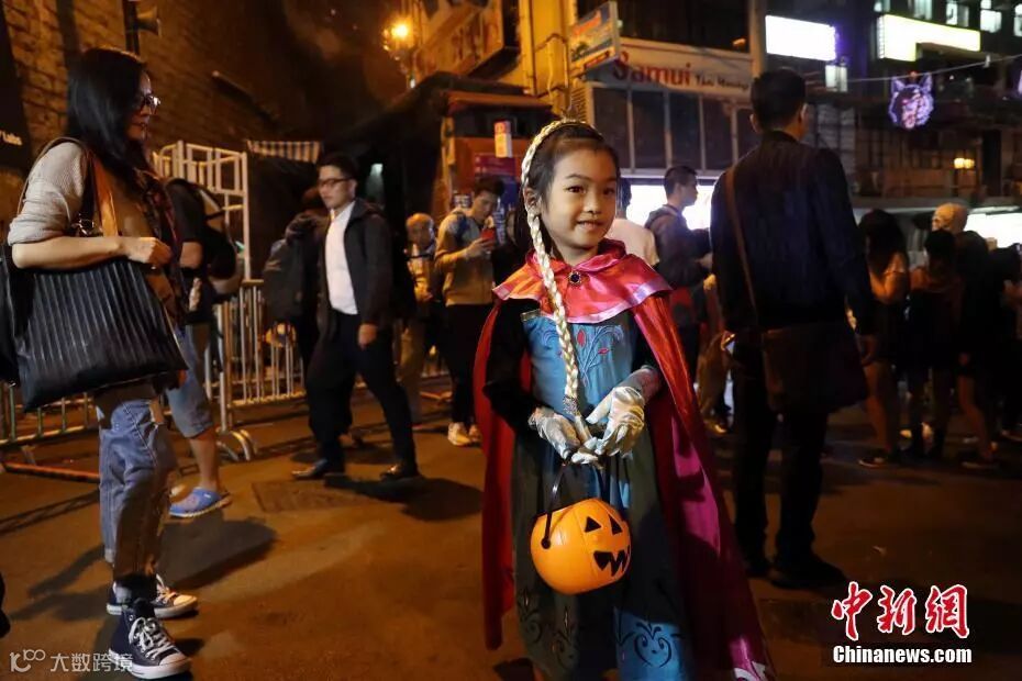 (中)万圣节前夕,几位挑战者装扮成电影中的恐怖人物登上长沙世界之窗55米高的蹦极台,从高空一跃而下,感受自由落体的刺激。