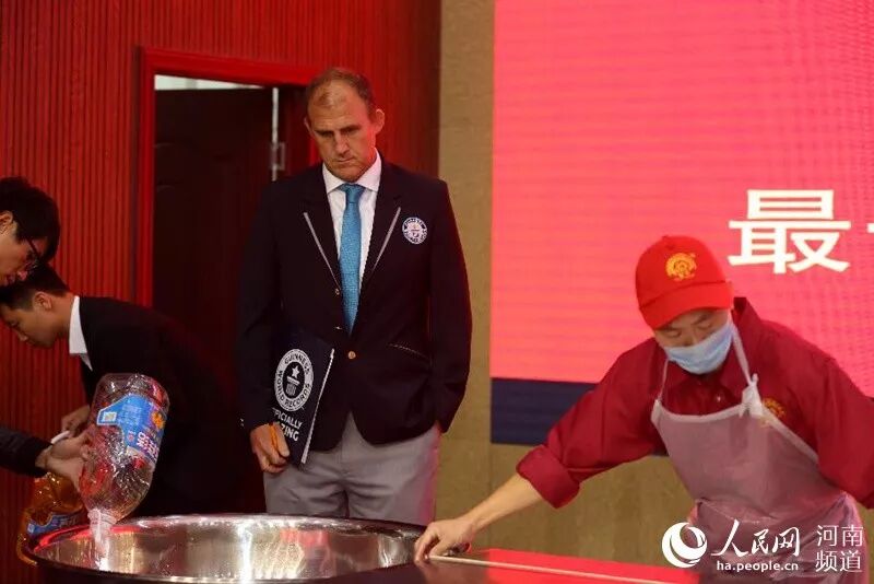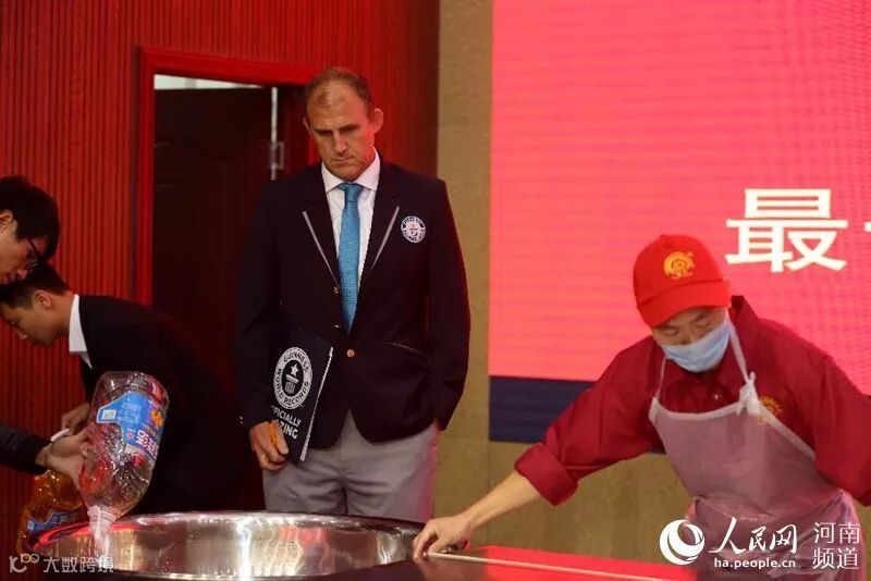 同日、調理師3人が24時間半かけて、40キロ以上の小麦粉を使い、長さ3084.32メートルの麺を作り上げた。これまで最も長い麺のギネス記録は、日本の企業が2007年に作った548.7メートルだった。ギネス公式認定員のジョン・ガーランド氏が会場で、世界記録更新の認定を行った。