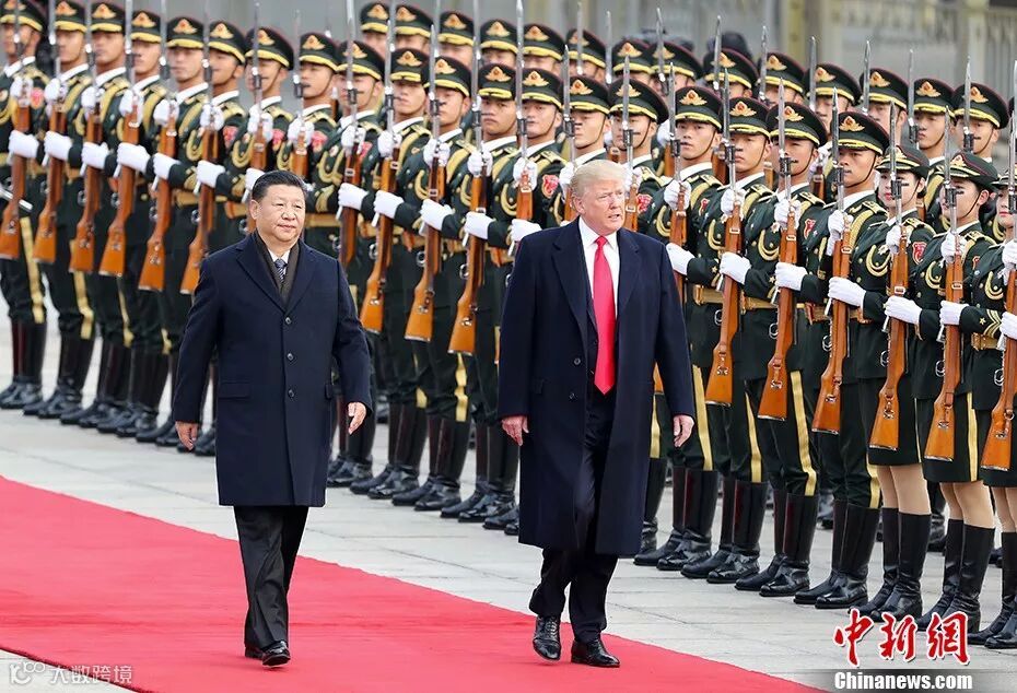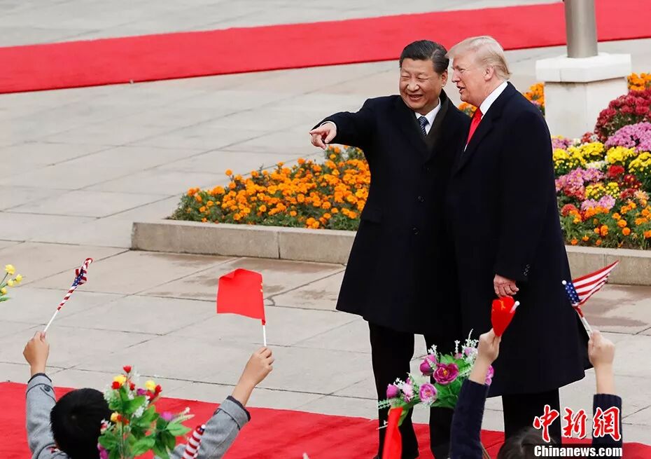 9日午前、習主席は人民大会堂東門外広場で歓迎式典を催し、トランプ大統領の中国への公式訪問を歓迎した。