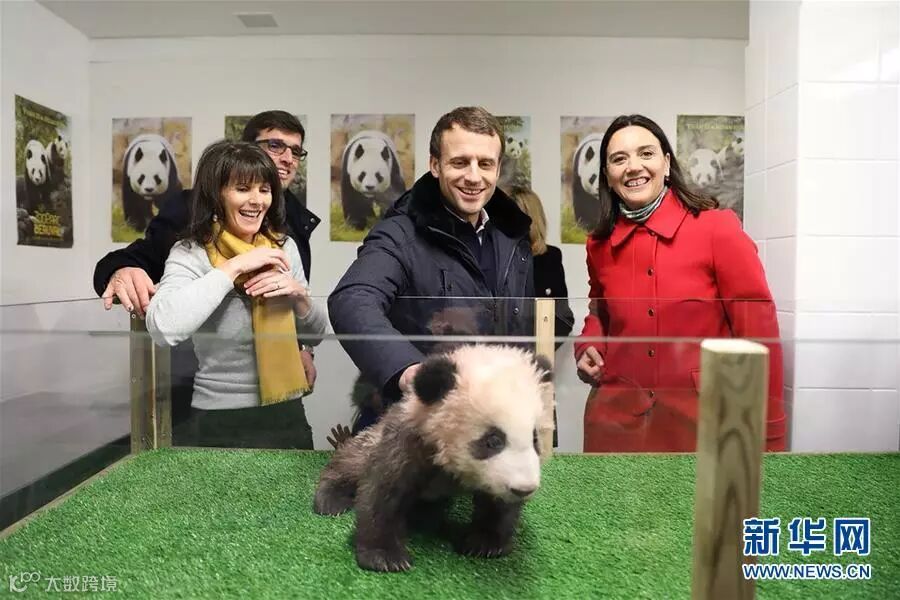 ボーバル動物園で、赤ちゃんパンダ「圓夢」と対面したマクロン大統領