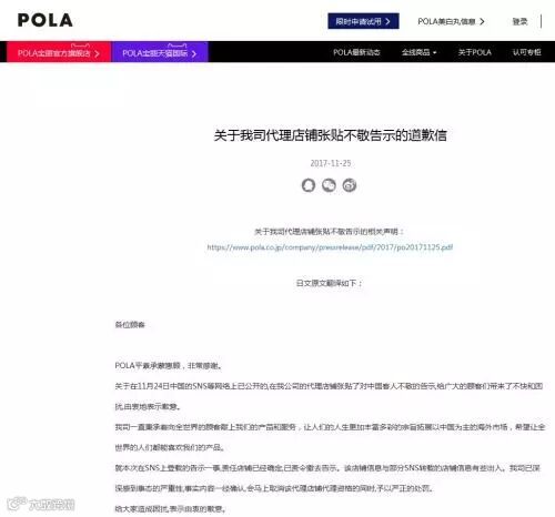 化粧品大手ポーラの販売店が「中国の方出入り禁止」と貼り紙していたことに関しこのほど、公式サイトに謝罪文を掲載した。