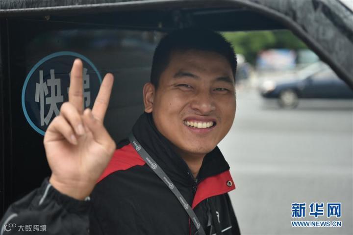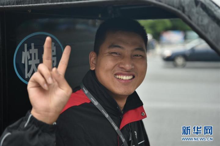 安徽省合肥市で配達作業中の速達スタッフ劉全さん(4日撮影)。