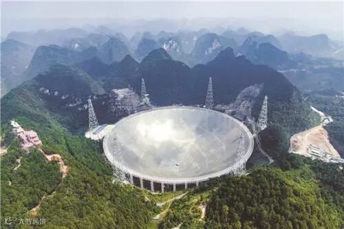 「天眼」は、直径500メートルの世界最大の電波望遠鏡(FAST)。理論上、137億光年以上離れた宇宙からの信号も受信できる。