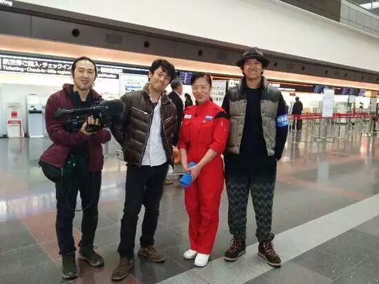 「僕がここに住んでいる理由」の撮影チームと撮影対象者となった東京羽田空港の清掃員・新津春子(郭艶春)さん。
