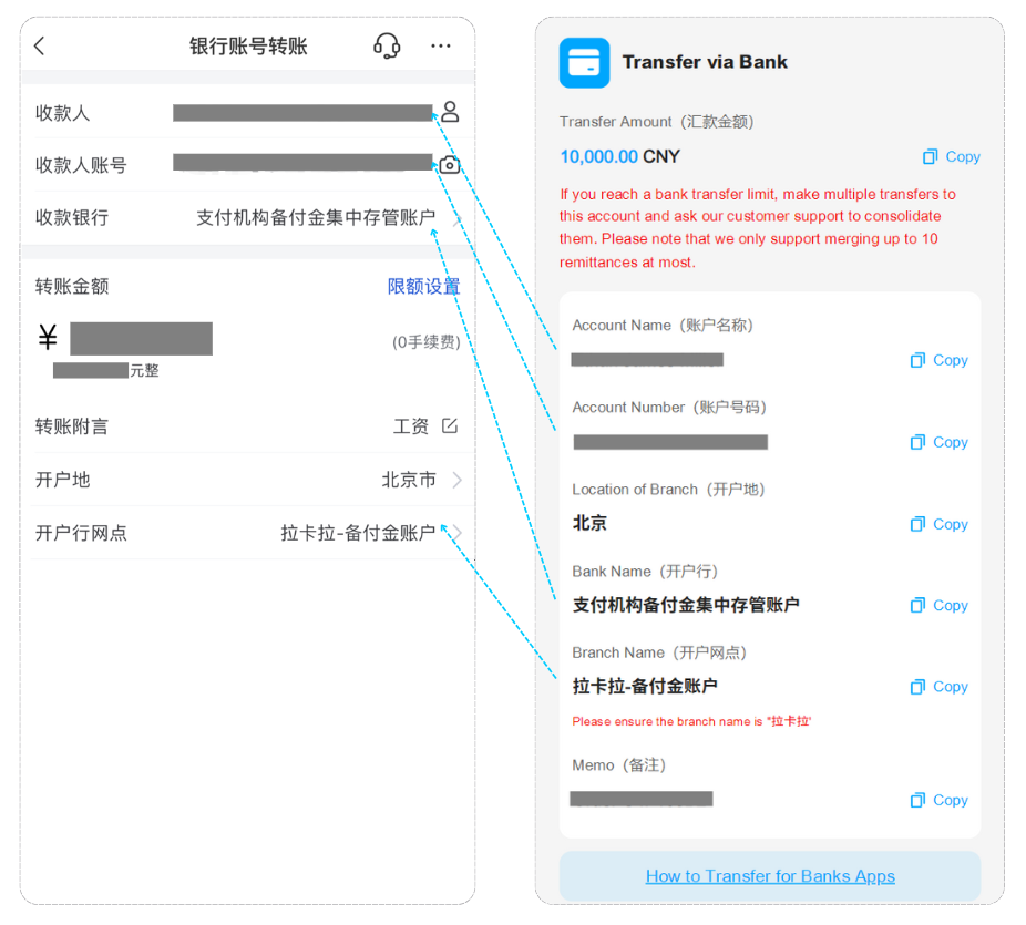 在开始之前,请检查您的银行账户在中国境内汇款的人民币限额以避免转账问题。