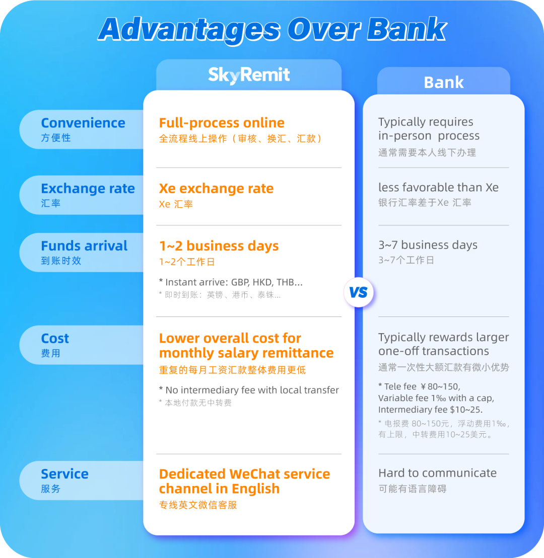 我们兴奋地向您宣布,SkyRemit 对报价模型进行了重大优化,优化后价格更透明,性价比更高。