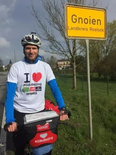 2015年4月26日、北京を目指して郷里の独グノイーンを出発したシュレーダーさん