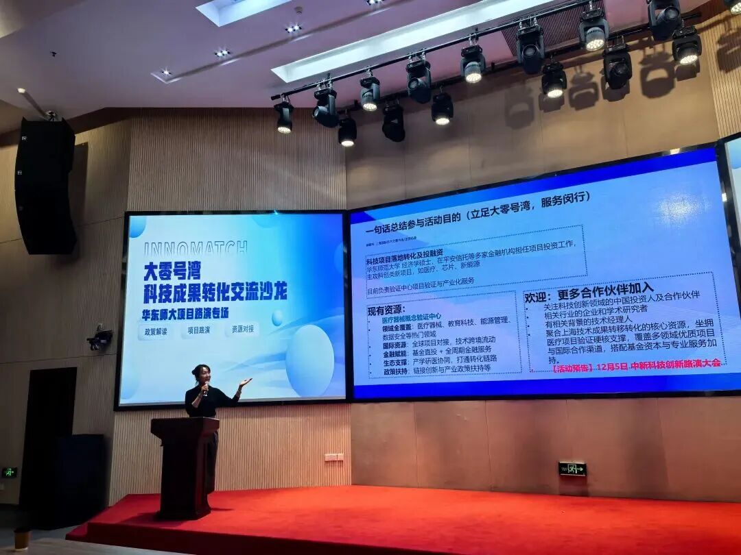 此次活动是闵行区推动大零号湾“高校 + 产业 + 资本” 协同创新的重要形式,也是华东师大孵化器发挥平台作用、加速高校科技成果转化的具体行动。近年来,闵行区科委始终聚焦大零号湾科技创新策源功能提升,通过搭建多元化对接平台、完善政策服务体系、强化资源要素保障,持续推动高校创新成果与产业需求精准对接,助力科技型企业成长壮大。下一步,我们将持续推出垂直产业主题沙龙(覆盖人工智能、低空经济、生物医药等重点领域)、项目精准对接会、专家大咖经验分享等活动,持续赋能技术经理人,并发挥技术经理人团队的力量和优势,搭建更多高质量成果转化对接平台,推动优质科技资源加速集聚,为区域经济高质量发展注入更强科技动力,助力大零号湾打造成为全国知名的科技成果转化高地与创新人才集聚高地。