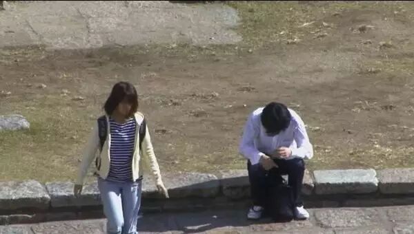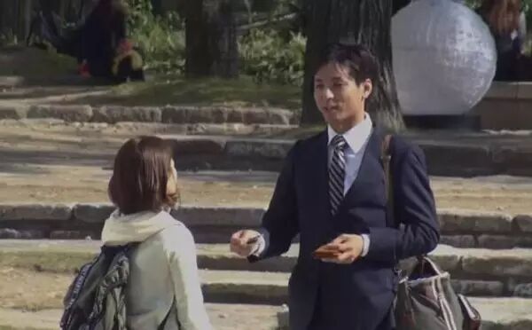 まず一人目のターゲットは道端に座っていた白いワイシャツを着たイケメン。女性は男性にお金を貸してくれるように頼んだ。すると男性は丁寧な口調で「財布が見つからなくて、実はお金を持っていない」と告げ、お金を貸すのを断った。