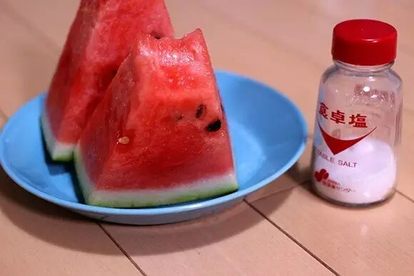 日本人は、「甘さが増す」と、甘いスイカに塩をふって食べる。