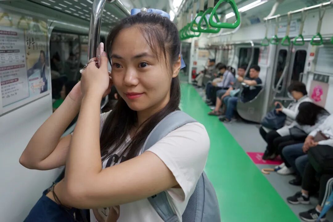 首尔的地铁车厢,思颖习惯性地收起盲杖,没有人刻意让座