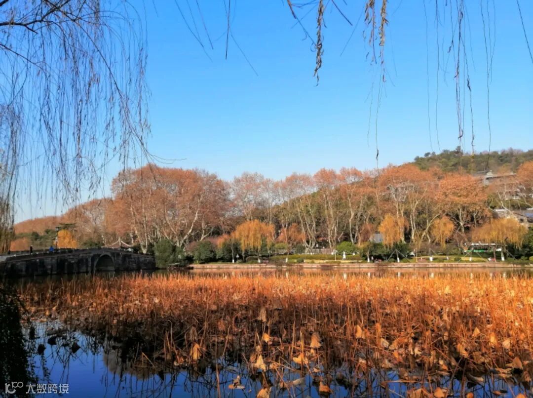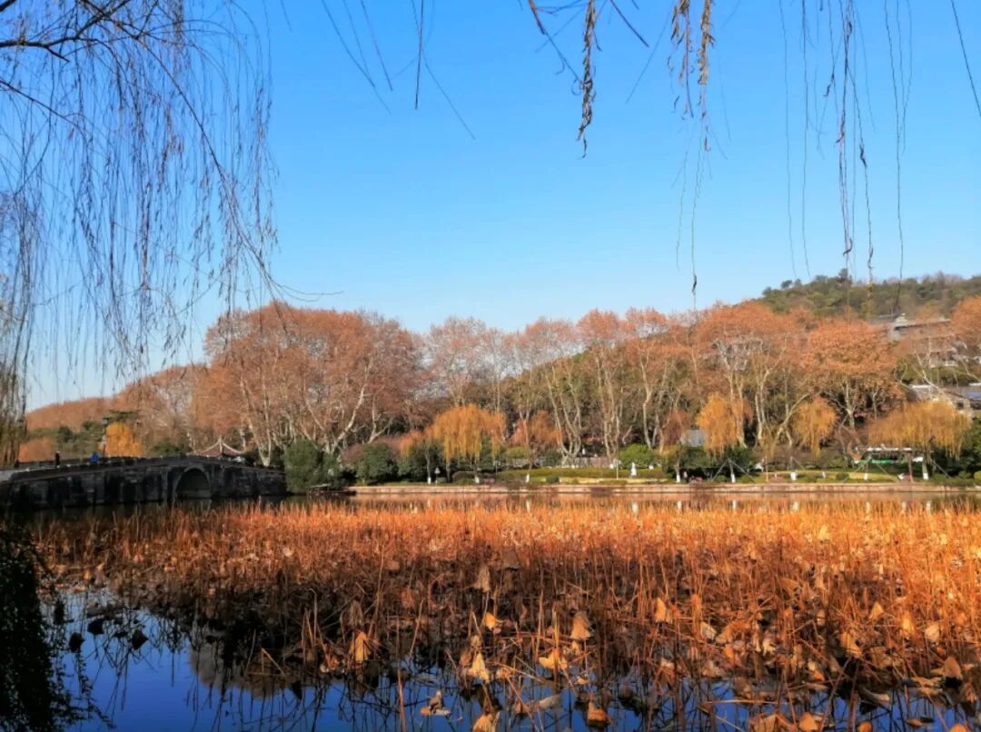 「西湖里的荷花枯萎了,憔悴了,但是别有一番风景,想起一首李商隐的诗:竹坞无尘水槛清, 相思迢递隔重城。秋阴不散霜飞晚, 留得残荷听雨声。」