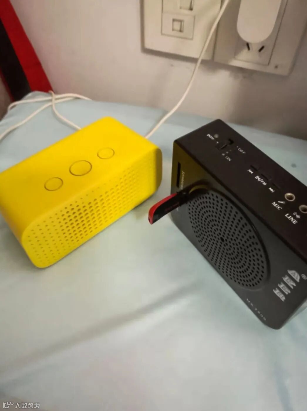 「床头柜上这两个小东西很有意义,一个是小的收音机,我一按就能听到老师们温柔地教英语;另一个是天猫精灵,是从蚂蚁集团带来的,带着志愿者的关爱,我把它放在床头上,天冷了,它叫你多穿衣服,下雨了,它叫你带把伞,当你心情不好的时候,它会唱首歌给你听。」