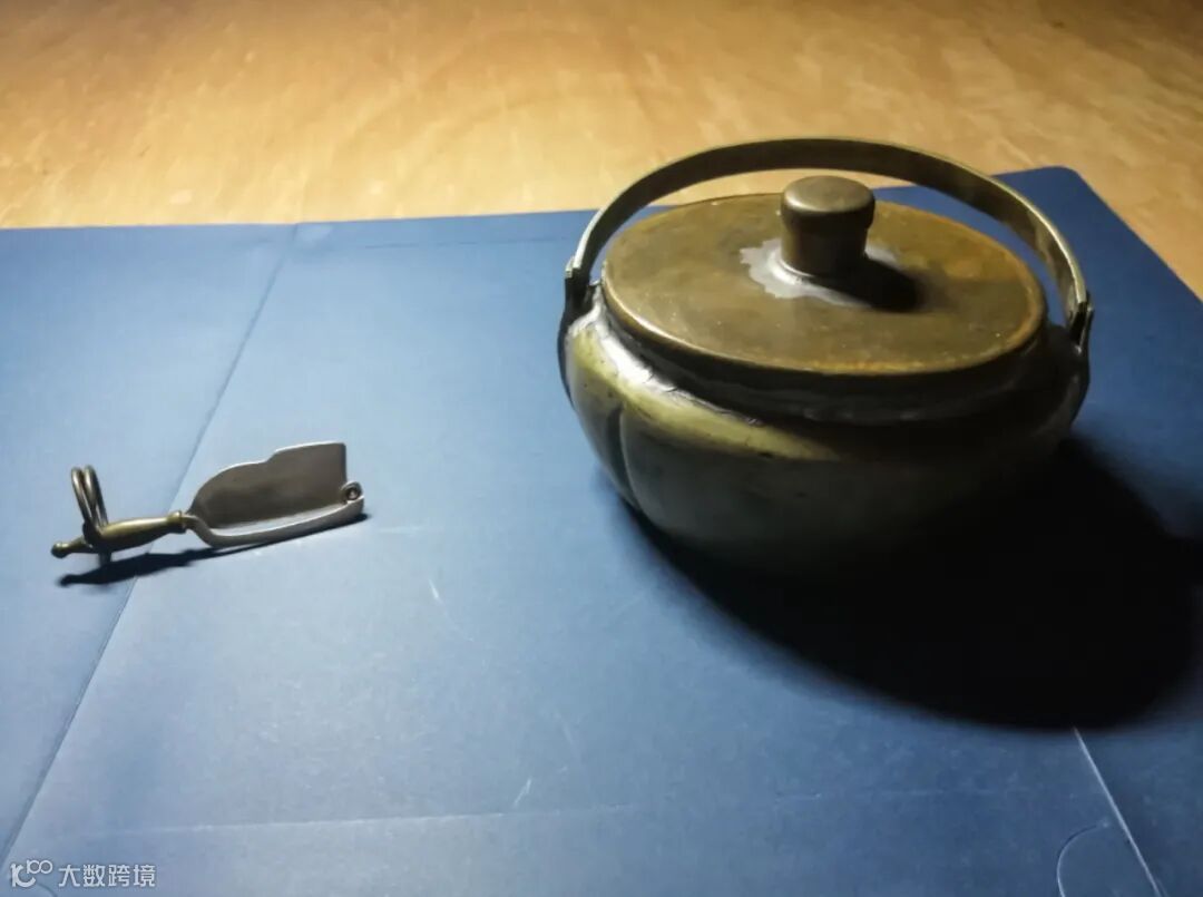 「这是我很小的时候父亲送给我的,暖手的铜婆子和小刨子都是我父亲亲手做的,我一直珍藏着这些,40多年来时不时地拿出来摸一下,看一下。」