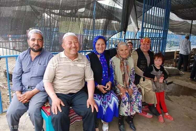 在和田的市场上遇到卖羊的一家人。维吾尔族人都很开朗