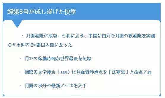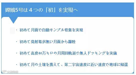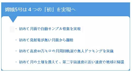 その他、嫦娥5号には、新しい月探査機——嫦娥5号、新しいロケット——長征5号、新しい発射場——海南文昌と、3つの「新」も託されている。