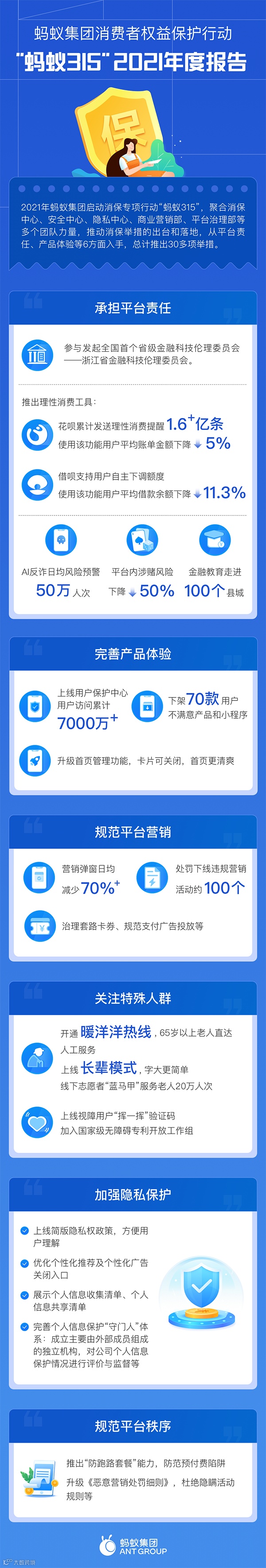 蚂蚁集团2021年初,蚂蚁集团发起了一项名为「蚂蚁315」的消费者权益保护专项行动。