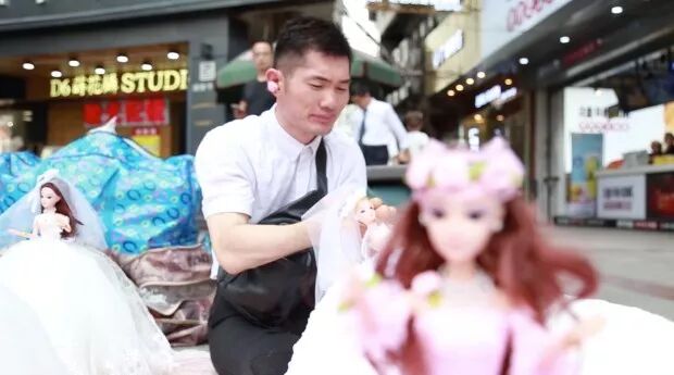 现在是夏天,王明月每天下午三点左右出摊,晚上八九点收摊,然后继续去夜市摆摊到深夜1点多。他的「娃娃」生意很不错,淡季每天能卖出三四个或者七八个,旺季每天能卖出一二十个。一年下来,从王明月手中卖出的洋娃娃达2000个,平均每月盈利四五千。